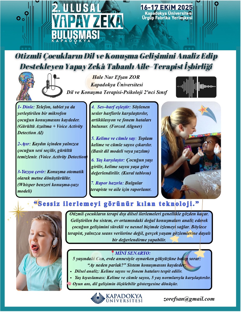 “Otizmli Çocukların Dil ve Konuşma Gelişimini Analiz Edip Destekleyen Yapay Zekâ Tabanlı Aile-Terapist İşbirliği”